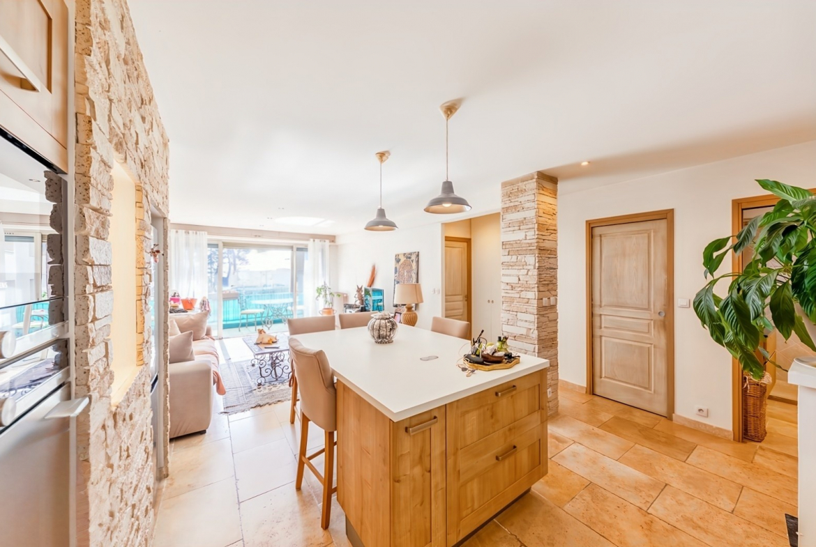 L’appartement se compose d’un vaste salon lumineux ouvert sur une cuisine américaine et entièrement équipée, son îlot central est idéal pour vos moments de convivialité. La belle chambre donnant sur la terrasse, dispose d’un dressing spacieux, pour un confort optimal. Une salle de douche moderne complète cet espace de vie ainsi qu’un WC indépendant.