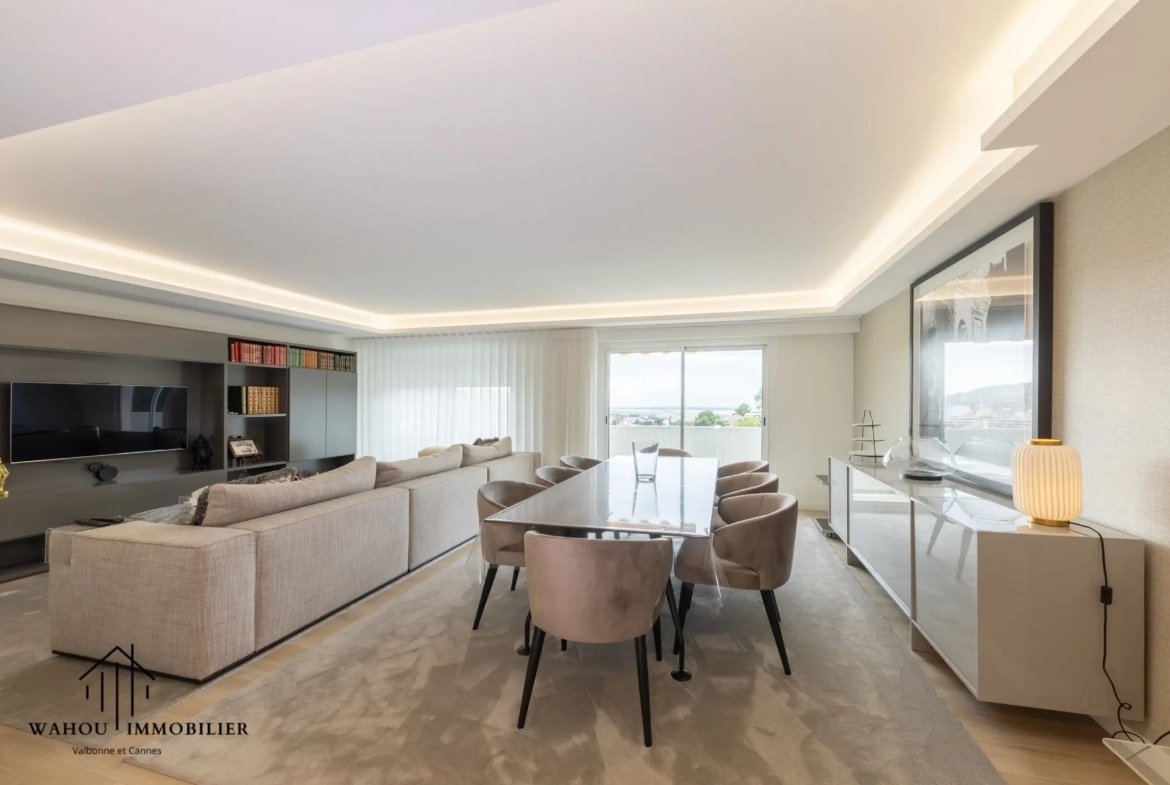 Ce splendide appartement au dernier étage d’une résidence sécurisée avec gardien, vous séduira par sa rénovation soignée et ses prestations de très haute qualité. Vous admirerez une vue panoramique à couper le souffle sur la mer avec les îles de Lerins et la ville de Cannes.